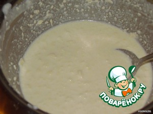 Влить в муку полученную жидкость (можно наоборот муку в жидкость).