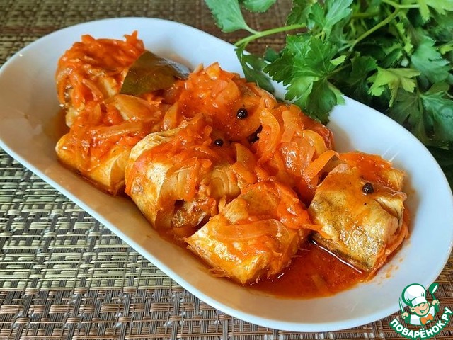 Самую простую и бюджетную рыбу можно "раскрасить", приготовив её в томатном маринаде с луком и морковью. Рыба пропитывается вкусом и ароматом овощей, соуса и становится очень сочной и вкусной. Подавать можно как в горячем, так и в холодном виде. Этот вариант можно считать диетическим, так как рыба не обжаривается предварительно.
