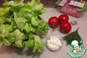 Для начинки для бургера понадобится - сливочный сыр + чеснок + укроп, помидоры и листья салата