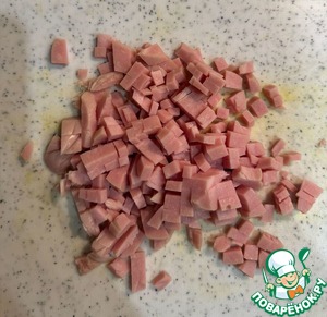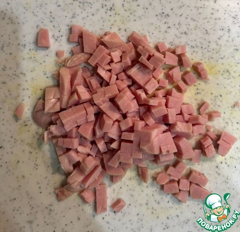 Ветчину произвольно нарезать. (Сыр натерла заранее)
