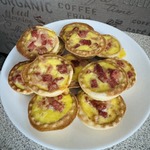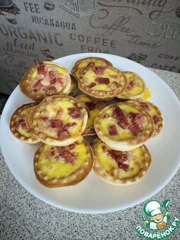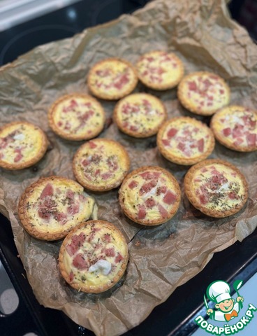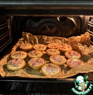 Я обычно в такие тарталетки сыр и ветчину режу кубиком и перемешиваю. Получается сверху местами сырная корочка. И очень неплохо добавить что-нибудь из овощей - сладкий перец или зеленый горошек, петрушку. Весьма украшает вкус. Но это уже опционально, что в холодильнике найдётся.)