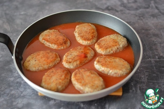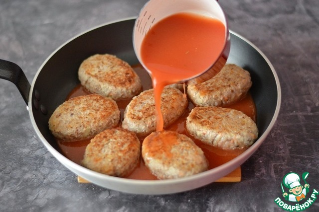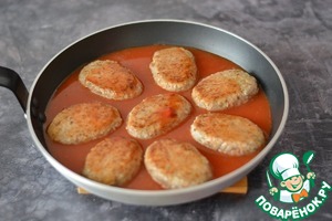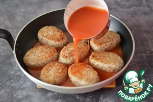 Влейте эту томатную жидкость к гречаникам в сковороду.