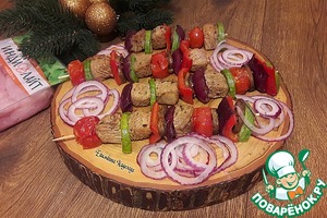 Подаем на блюде - на шпажках, украсив кольцами красного лука!