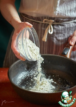 Сливочное масло растопить на сковородке. Добавить муку, обжарить до золотистого цвета. Добавить молоко и размешать, чтобы не было комочков. Довести до густоты сметаны, постоянно помешивая. Посолить, поперчить. В оригинальном рецепте идут сливки, но соус получается слишком тяжелым.