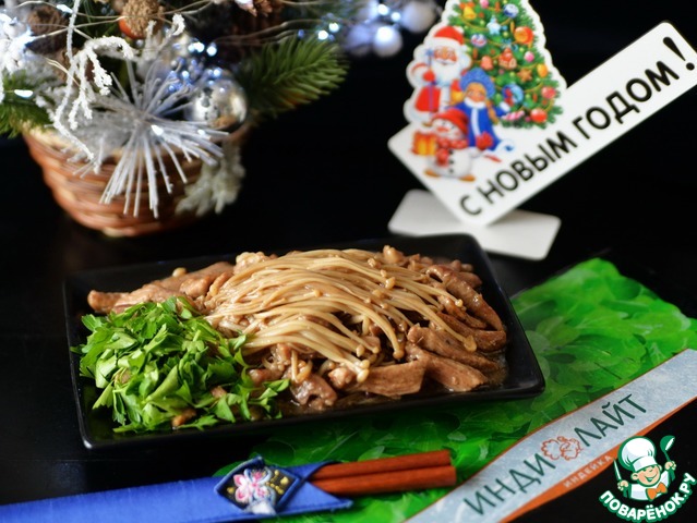 Индейка с грибами эноки