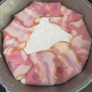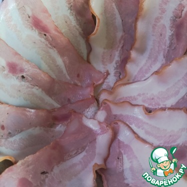- Бекон (или варено-копченая грудинка) — 12 ломт.
