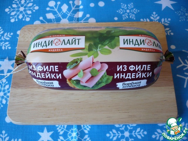 - Колбаса (вареная из филе индейки ТМ Индилайт) — 300 г