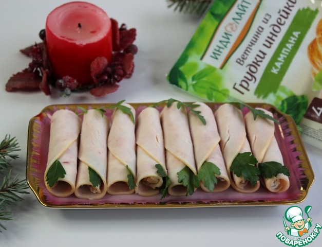 Рецепт «Рулетики из ветчины с сырной начинкой»: