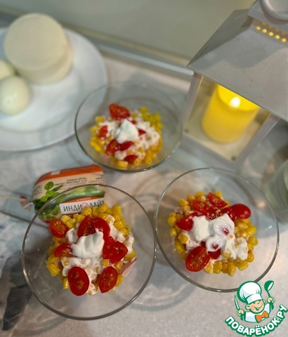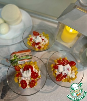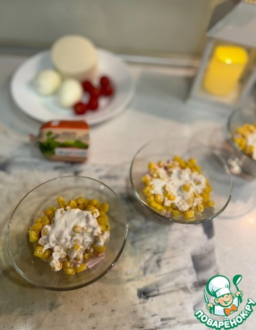 Второй слой - консервированная кукуруза и йогуртовая заправка