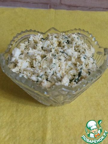 2. Добавить в "замес" немного укропа и завернуть салат в лаваш, намазав его на лист лаваша тонким слоем.