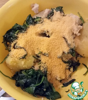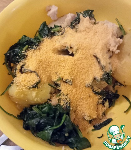 - Шпинат (зажаренный до свертывания на сухой сковороде, затем измельчённый) — 80 г