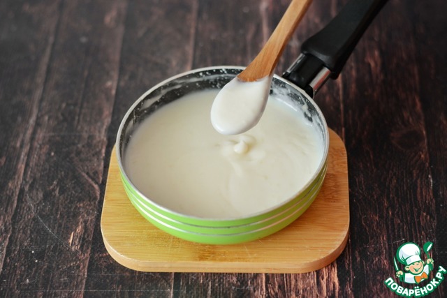 Тонкой струйкой влейте молоко при постоянном помешивании, и проварите соус до загустения. Помешивать можно как лопаточкой, так и венчиком - делайте как вам удобнее, важно, чтобы не было комков в соусе.