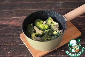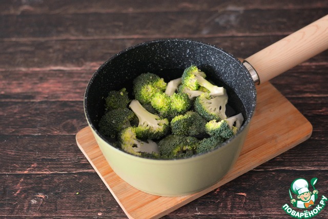 Параллельно отварите брокколи в подсоленной воде, нарезав на кусочки.