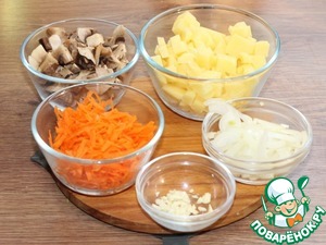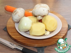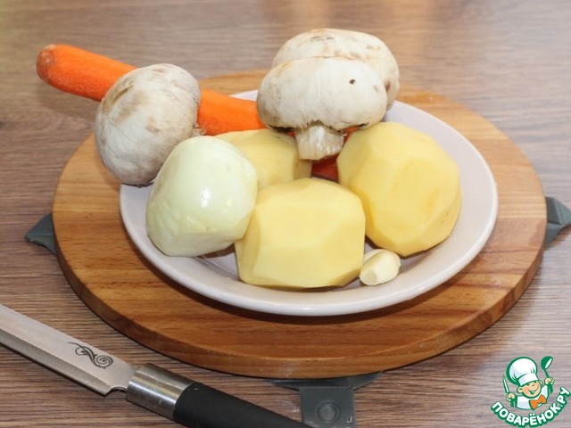 3. Грибы, лук, чеснок, картофель и морковь очистить.