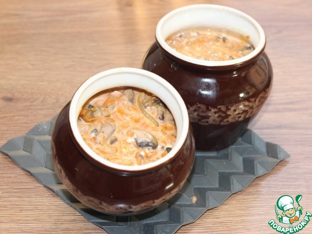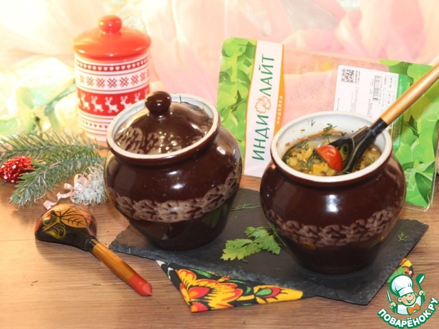 Рецепт «Индейка в горшочке с грибной зажаркой»: