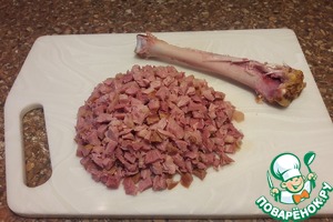 С голени снять кожу, освободить от кости, порезать кубиком