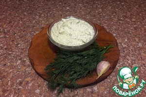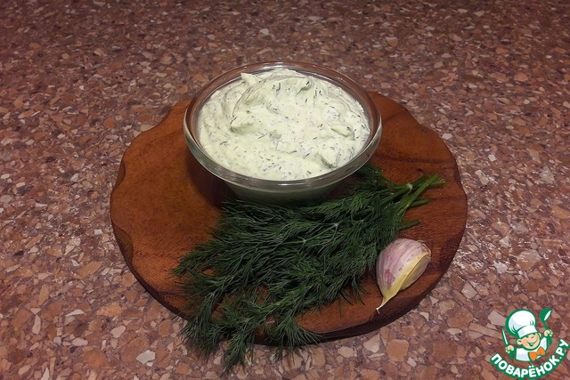 смешать йогурт + мягкий сыр + чеснок + укроп -