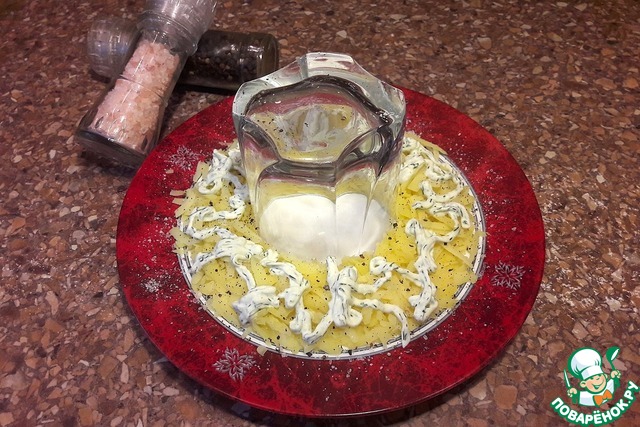 1 слой - картофель + соль + перец,