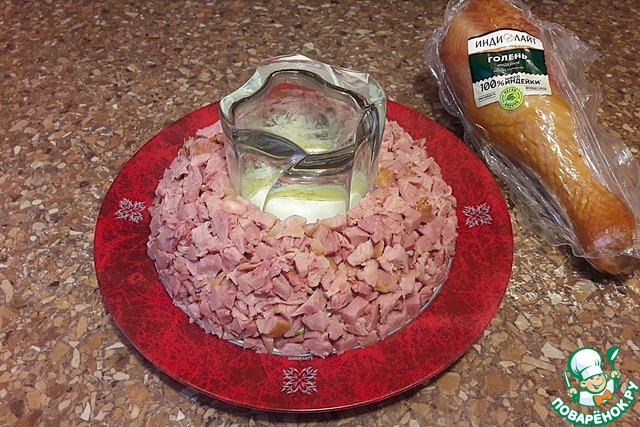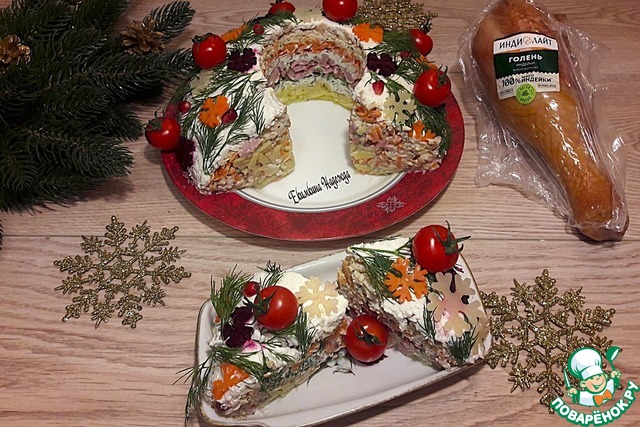 Новогодний салат с варено-копченой индейкой