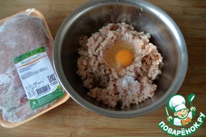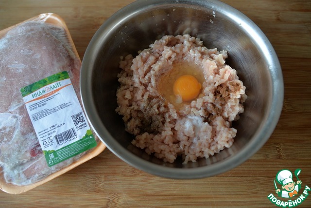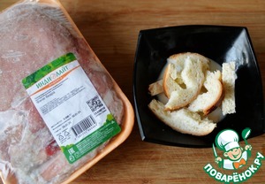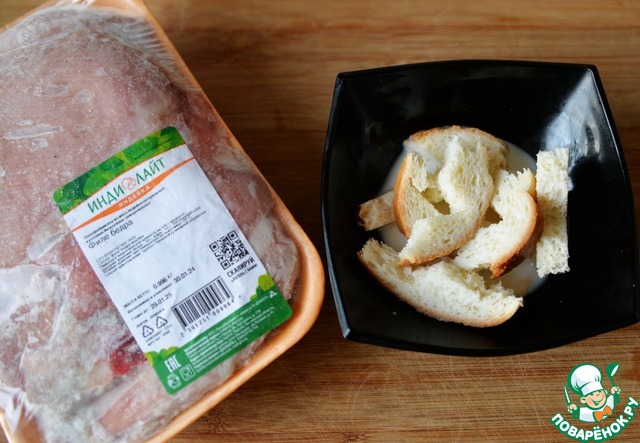 Для фарша перекручиваем филе индейки с замоченным в молоке белым хлебом. У меня - филе бедра индейки Индилайт.