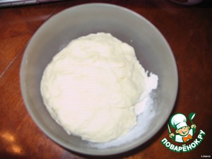 Делаем тесто: 2 ст. муки ( я потом немного еще добавляла) + 1 яйцо + 0,5 ч. л. соды, соль по вкусу + перец. Вымешиваем тесто, как на пельмени.