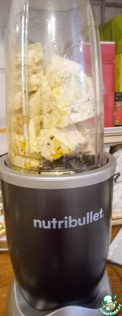В чашу блендера положить кусочки тофу, мисо-пасту, черный перец, лимонный сок, соль и 4 столовых ложек оливкового масла. Размешать.