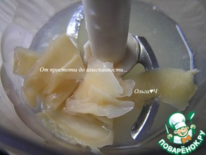 Снимите цедру с лимона (используйте в другом блюде), выжмите сок в мерный стакан, долейте воду, чтобы получилось 100 мл***. Добавьте имбирь и измельчите все в чаше блендера.