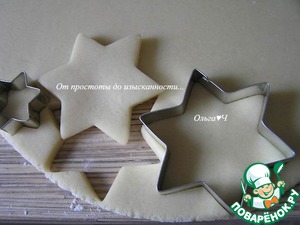 Тесто раскатайте, вырежьте звездочки разного размера.