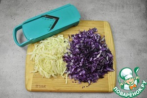 Нашинкуйте тонкой соломкой капусту. Воспользуйтесь ножом или специальной теркой.