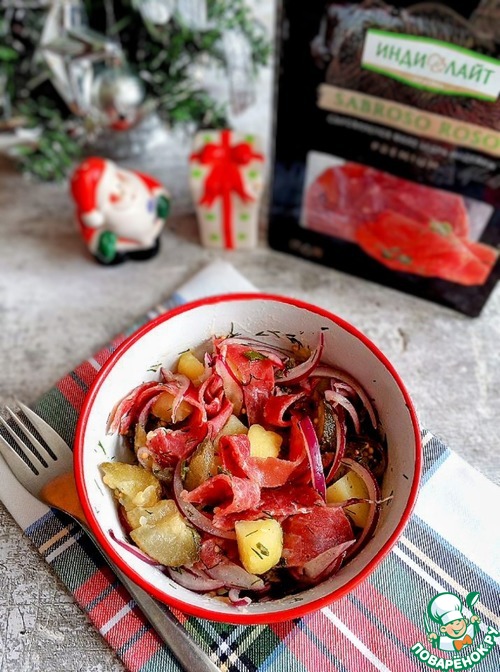 Для салата я буду использовать сырокопчёное филе бедра индейки ТМ Индилайт.