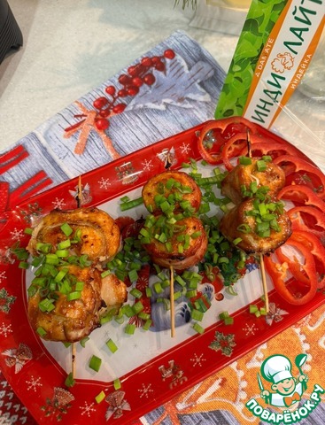 Шашлычки готовы. Смело подаем к столу и наслаждаемся невероятным вкусом. Сверху можно украсить зеленым луком! Всем приятного аппетита!