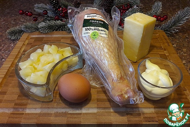 Ингредиенты для «Новогодний салат с ананасами и индейкой»: