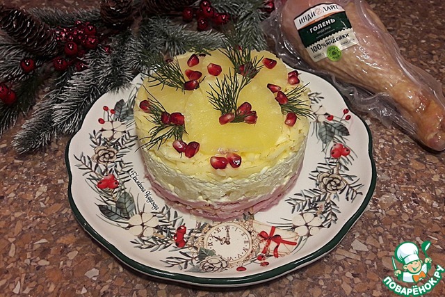Рецепт «Новогодний салат с ананасами и индейкой»: