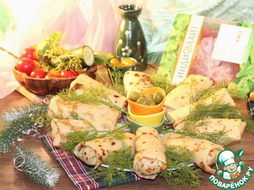 К праздничному столу можно приготовить аппетитную закуску - блинчики, и наполнить их сытной и вкусной начинкой. Закусочные блинчики настолько хороши, что их всегда кажется мало. Поверьте, никакие бутерброды не сравнятся с ними.