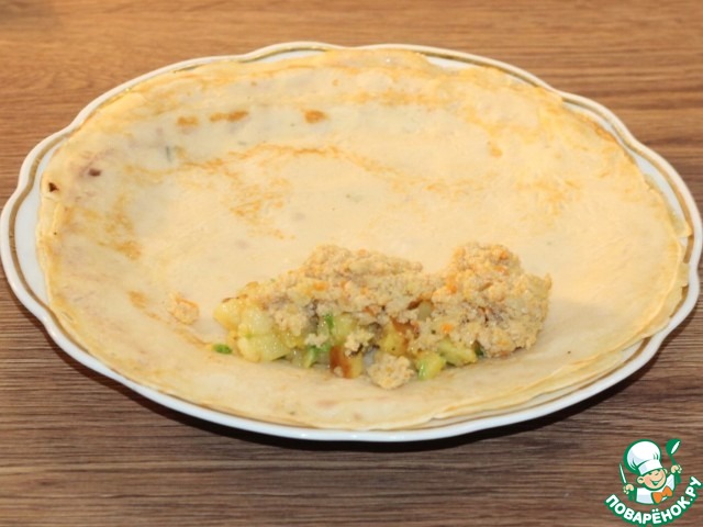 Рецепт «Блинные конвертики с индейкой и картофелем»: