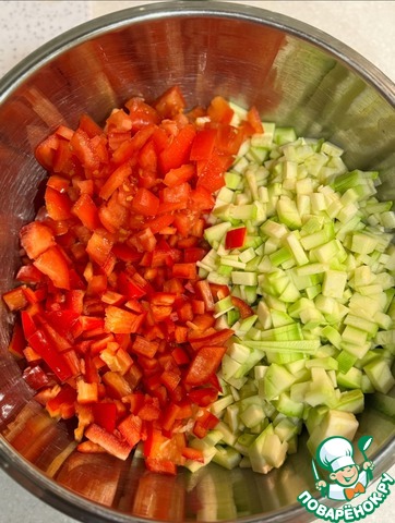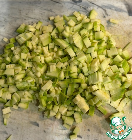 Для овощной "шубки": кабачок нарезать мелким кубиком
