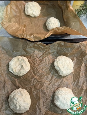 Тесто разделить на равные части в виде шариков, выложить на противень, застеленный пергаментом