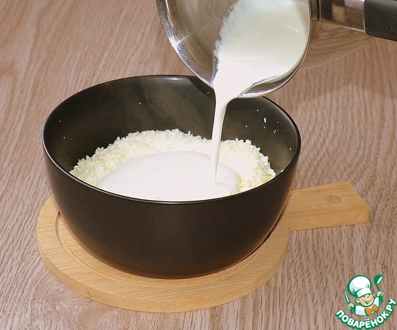 У меня оставался небольшой (80 гр.) кусочек белого шоколада ( кувертюр).