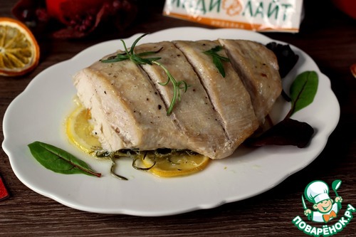Сверху на цитрусовую подушку выложите филе грудки индейки