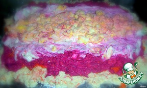 Третий слой - тёртая свекла с майонезом, немного посолить.