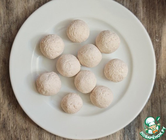 Скатать шарики, размером, меньше, чем грецкий орех.