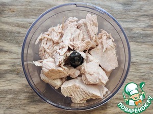 Медальоны предварительно отварить до готовности в подсолёной воде, дать остыть, поместить в блендер, измельчить.