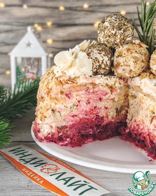 Торт-салат со свеклой и индейкой