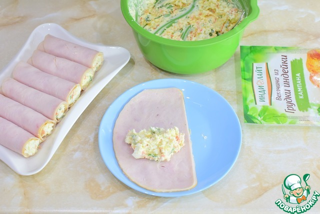 Рецепт «Праздничные рулеты из ветчины»: