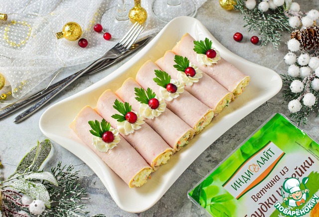 Праздничные рулеты из ветчины
