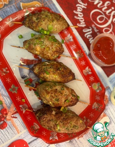 На шпажке сформировать кебаб. Шпажки заранее замочить в воде для того, чтобы они не подгорели при высоких температурах