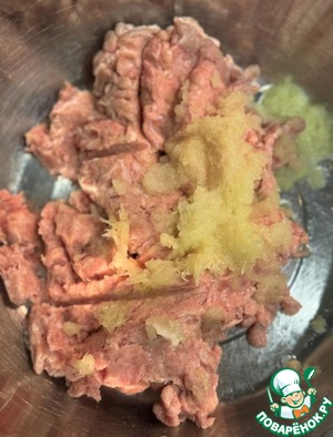 На мелкой терке натереть лук, добавить чеснок