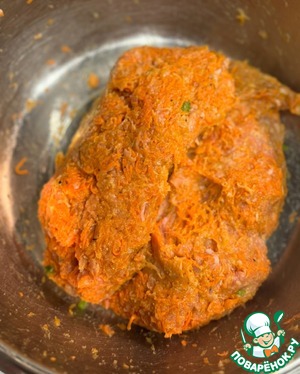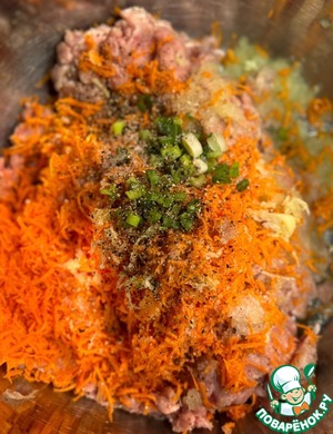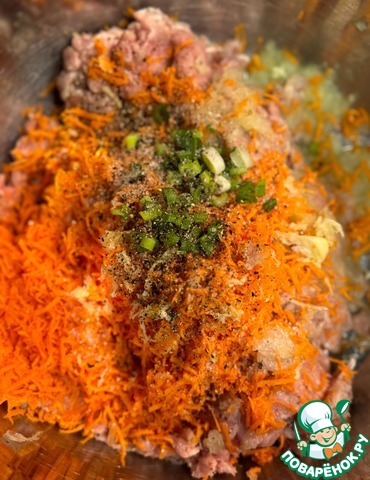 Натереть на мелкой терке морковь, можно также добавить зеленый лучок, соль по вкусу, перец