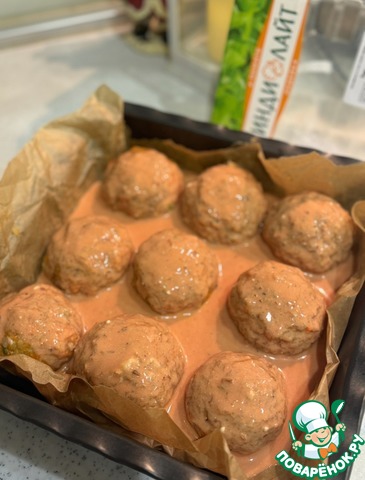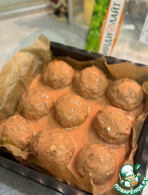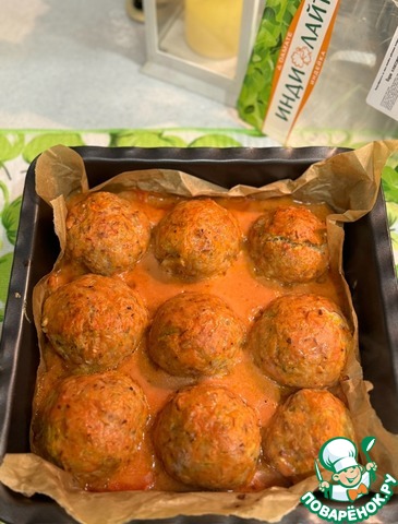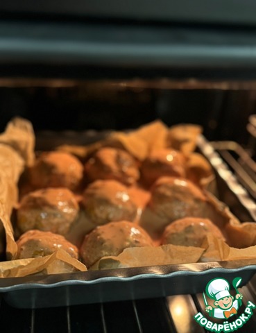 [+4]Фарш у меня куриный, а вместо томатной пасты домашние протертые помидоры.