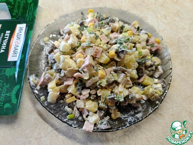 Приятный на вкус салат, совсем несложный, он отлично впишется на праздничный стол. Сытная картошка и ветчина Индилайт, ароматные шампиньоны, пикантные каперсы, зелень создают гармоничное сочетание, а майонез прекрасно всё объединяет.